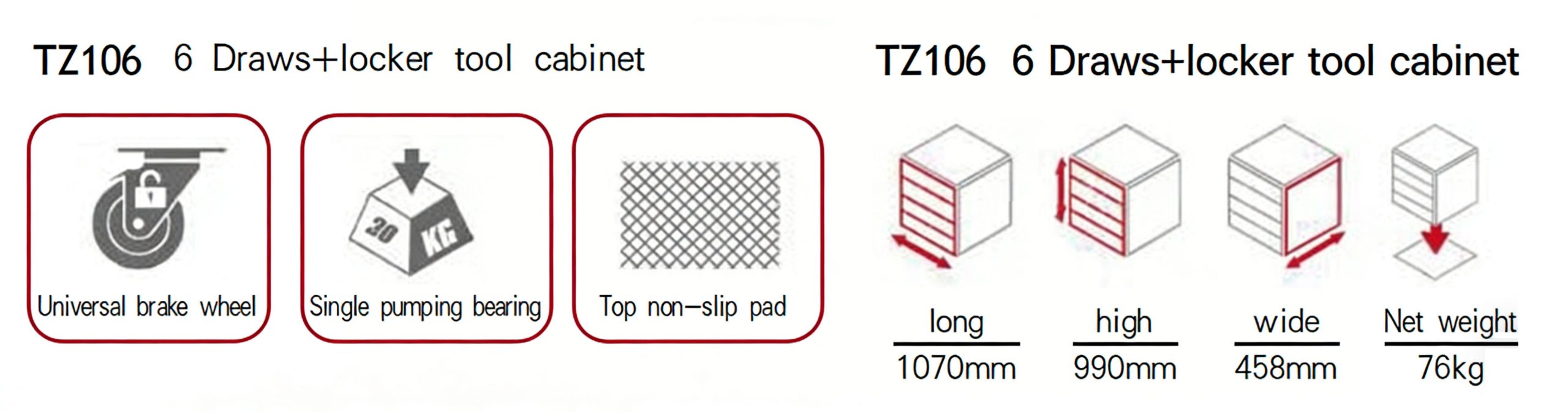 TZ106 6 Draws+locker tool cabinet